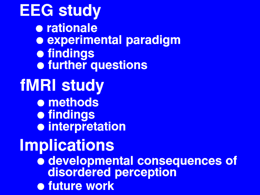 To wrap up, I'll talk about how all of this bears on the development of autism, and how I hope to follow up.