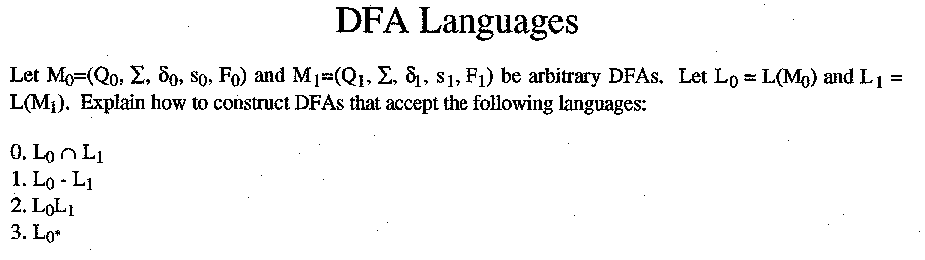 For a term project, you'll be writing an interpreter for a small programming language. (This may sound daunting, but the details will be explained and you'll have the tools with which to approach this problem.) The first part of this project is a concrete implementation of some concepts from the theory of finite automata. The subsequent parts apply what you'll learn about methods of specifying the structure of sequences of symbols---for a computer program itself is really nothing more than a sequence of symbols.